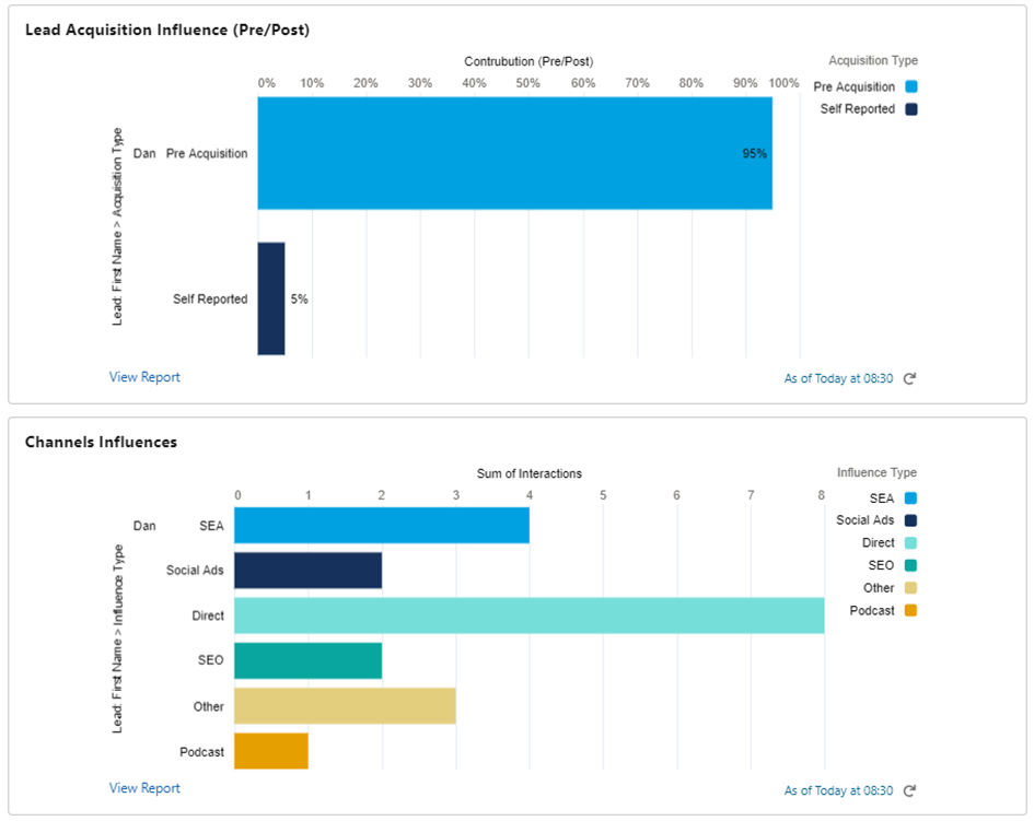 On lead generation you’ll be able to see how self reported attribution is counting against other digital interactions.