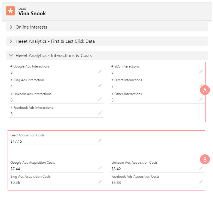 Using Heeet lead acquisition data in Salesforce allows you to create accurate reports on average paid interactions that occured before a conversion but also what is your average lead acquisition cost per campaigns.
