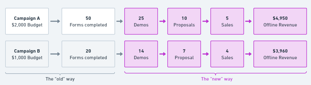 With this new tracking data, you will be able to figure out that spending additional 500$ on campaign 2 would generate a 211% ROI (21% higher that investing on campaign1)