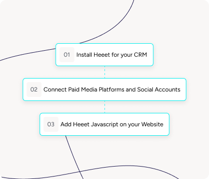 Implementing Heeet is quick and straightforward. The process varies slightly depending on your CRM, but the core steps remain the same: install or connect Heeet, link your paid platforms, configure your attribution model, and add the Heeet Javascript to your website