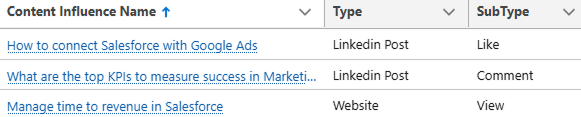 Now, when someone interacts with your company posts on LinkedIn, those interactions are turned into content engagement insights in Salesforce.