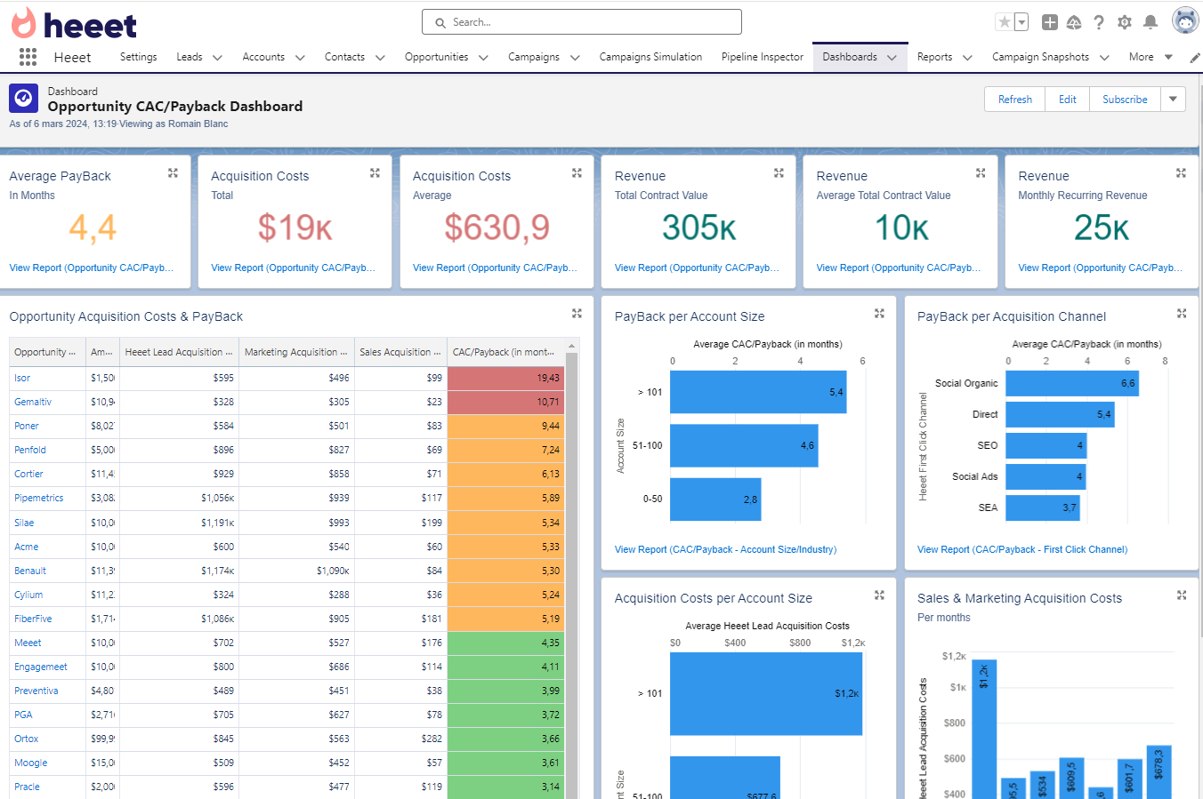 Because pictures worth a thousand words, here is the amazing accurate data and wonderful dashboard you can expect being automated in Salesforce thanks to Heeet.