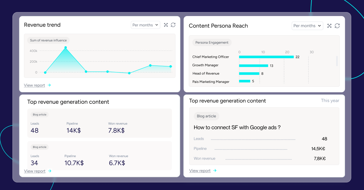 Best for: B2B revenue teams on Salesforce or HubSpot that need CRM-native content attribution without a shadow database.