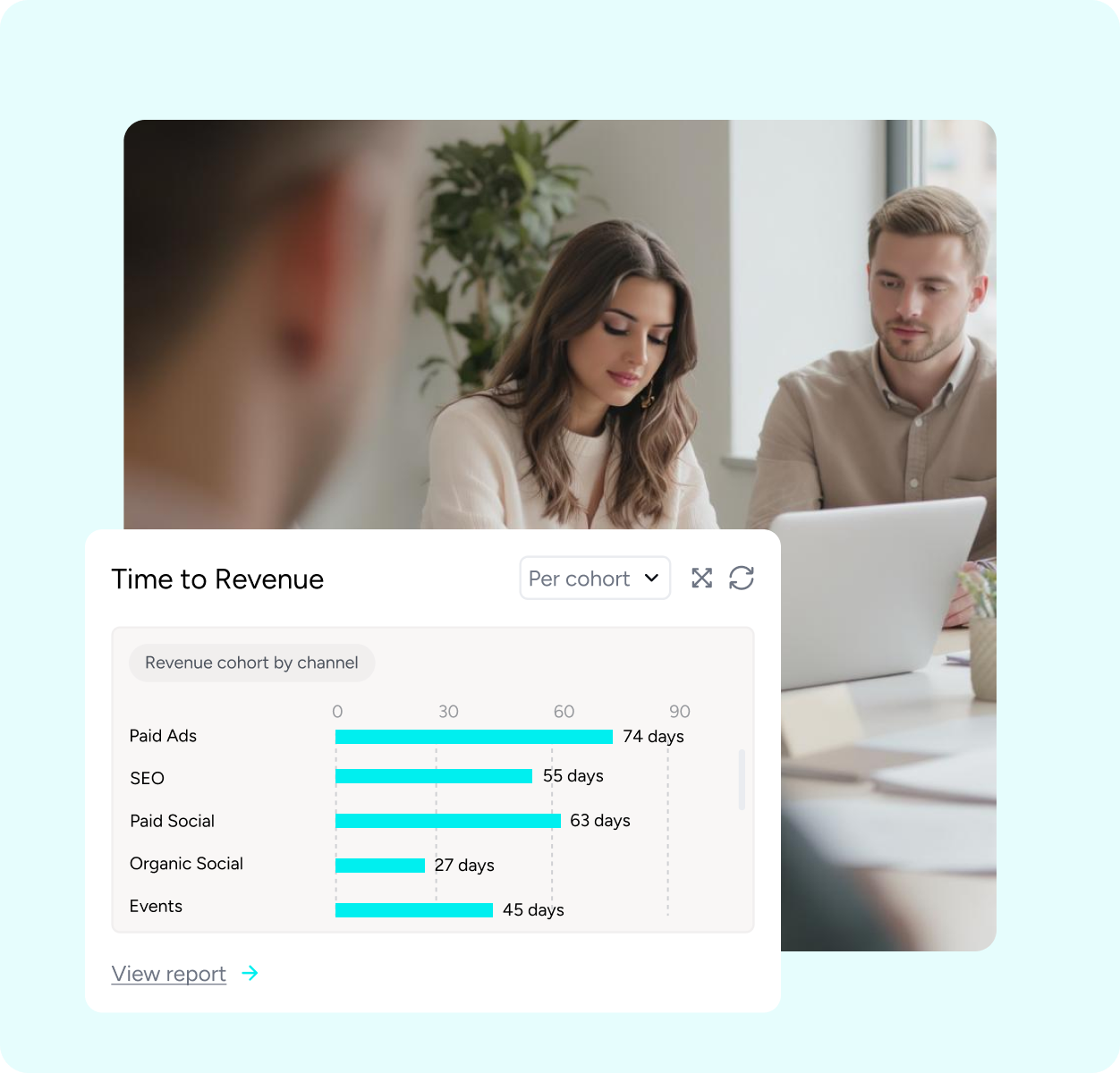 Heeet provides a central view of revenue cohorts by channel, from the first website visit to revenue.